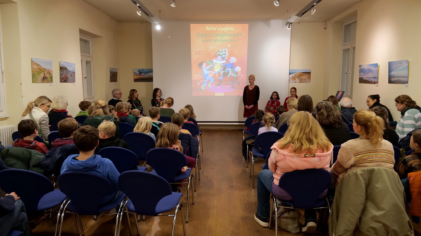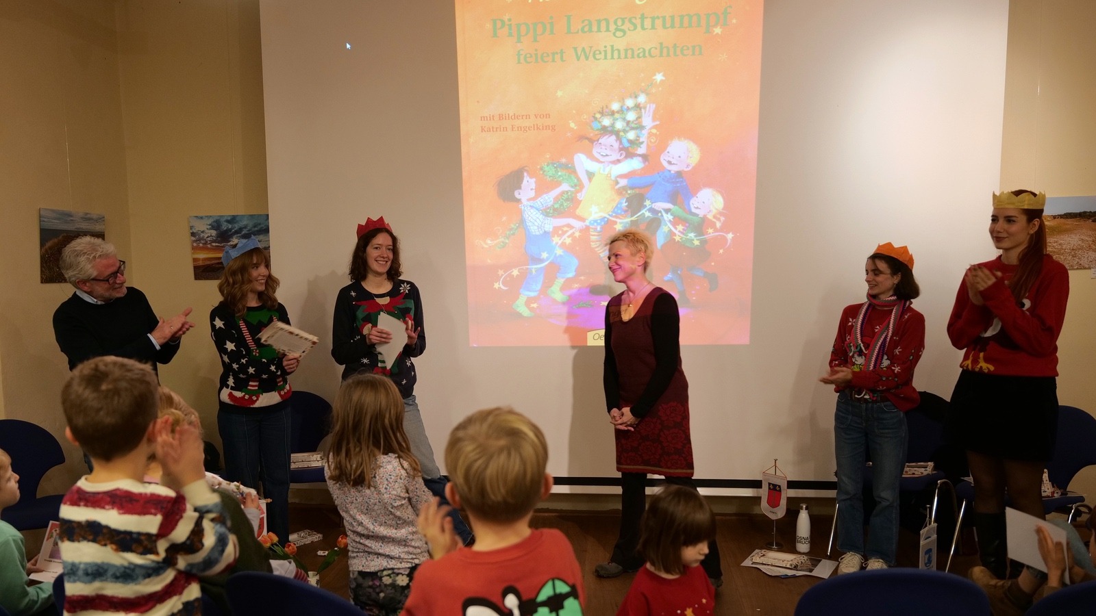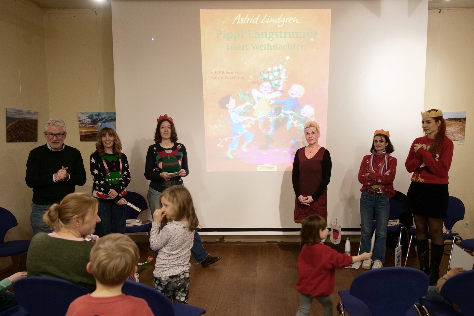 Es ist schon Tradition: Einmal im Jahr besuchen die Osnabrücker Städtebotschafterinnen die Lesewerkstatt im Ruller Haus. Diesmal stand das Buch „Pippi Langstrumpf feiert Weihnachten“ von Astrid Lindgren im Mittelpunkt. Die vier jungen Botschafterinnen aus den Niederlanden, Großbritannien, Frankreich und der Türkei lasen einzelne Abschnitte in ihrer jeweiligen Landessprache, nachdem LiesA (St. Scholze, Leiterin der Lesewerkstatt) sie in deutscher Sprache gelesen hatte.