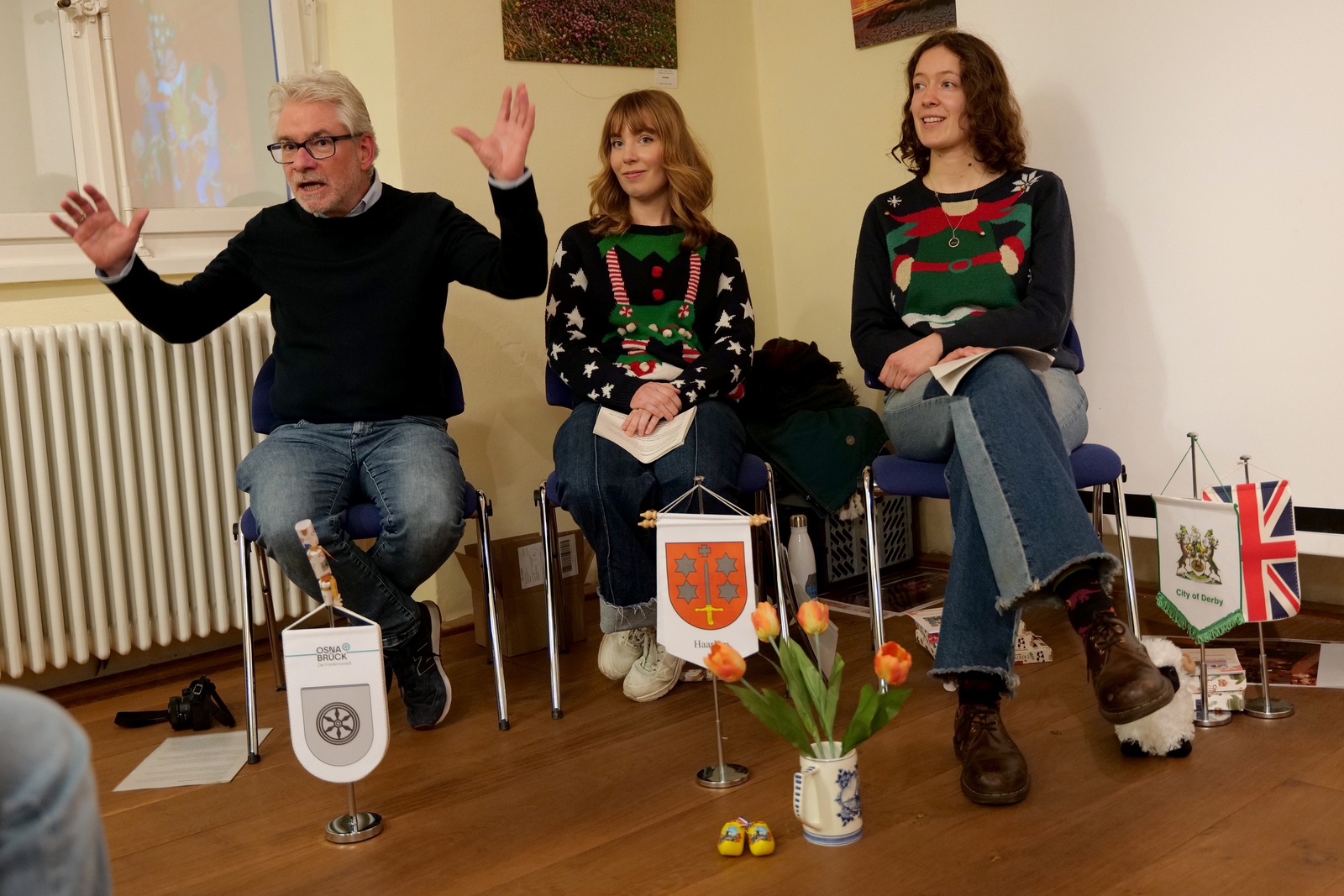 Im Anschluss an die Geschichte berichteten die jungen Frauen von landestypischen Weihnachtsbräuchen aus ihren Heimatländern. Jens Koopmann, Leiter des Osnabrücker Städtepartnerschaftsbüros, bedankte sich gemeinsam mit LiesA für die sehr ansprechende Darbietung, die einlud, es den Städtebotschafterinnen nachzutun.