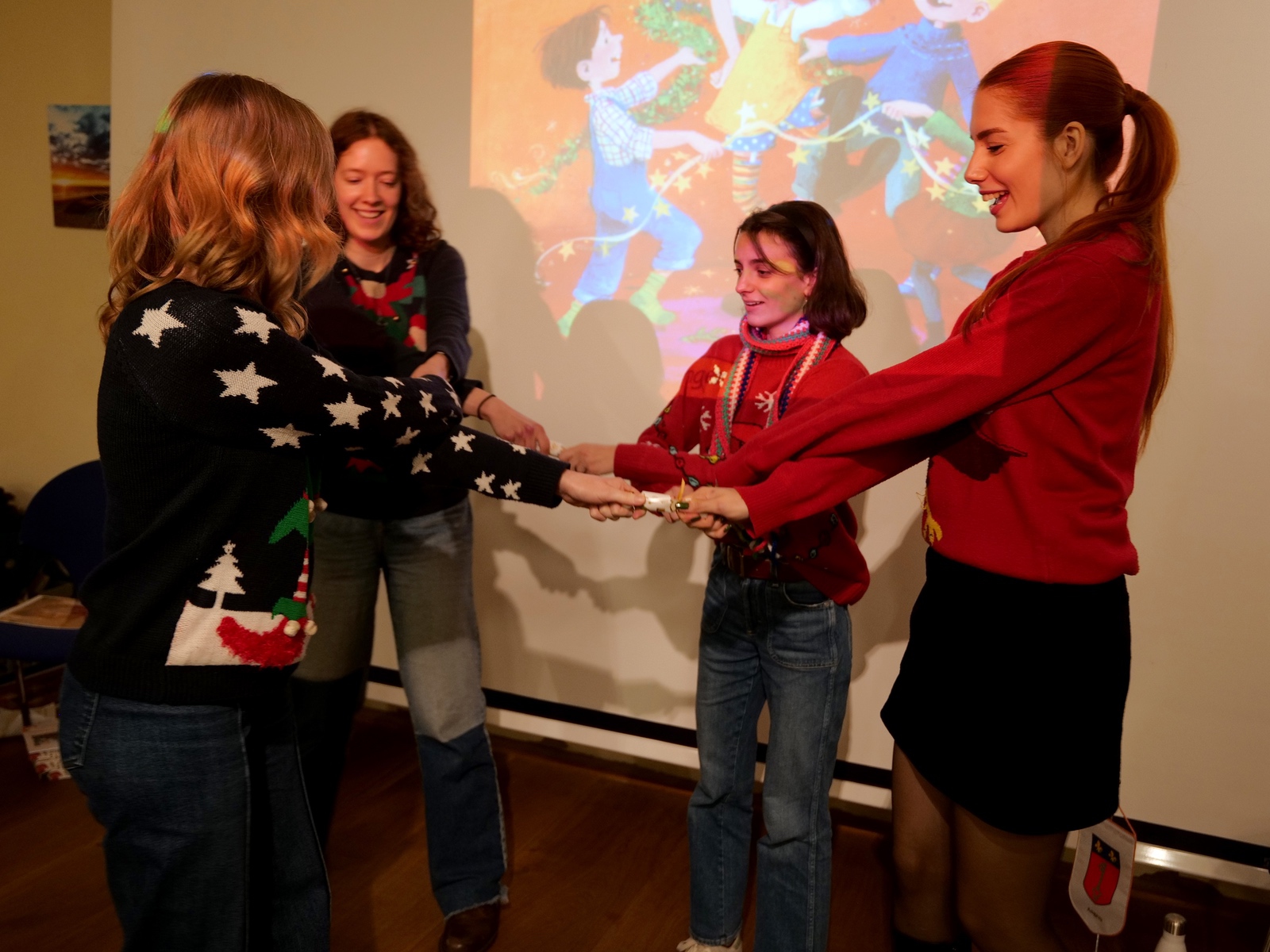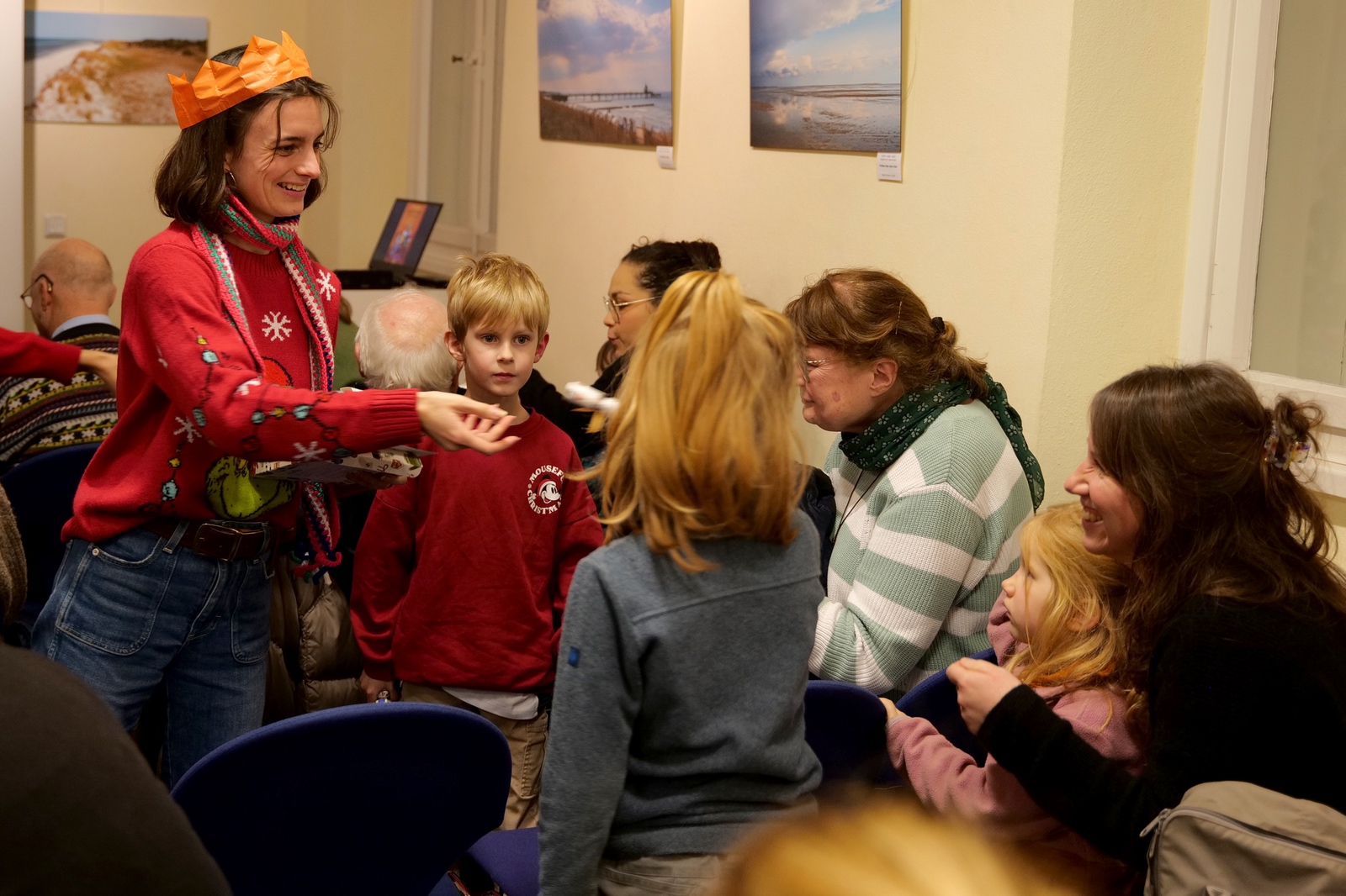 Und so versuchten sich kleine und große Gäste an Weihnachtsgrüßen auf Niederländisch, Englisch, Französisch und Türkisch. Als klitzekleine Überraschung gab es dann noch für jedes Kind einen echten Christmas-Cracker, das für Großbritannien weihnachtstypische „Knallbonbon“. Mit einem gemütlichen Beisammensein bei Kinderpunsch, Kaffee, Lebkuchen und Plätzchen sowie der Gelegenheit mit den Botschafterinnen ins Gespräch zu kommen, klang der Nachmittag stimmungsvoll aus.